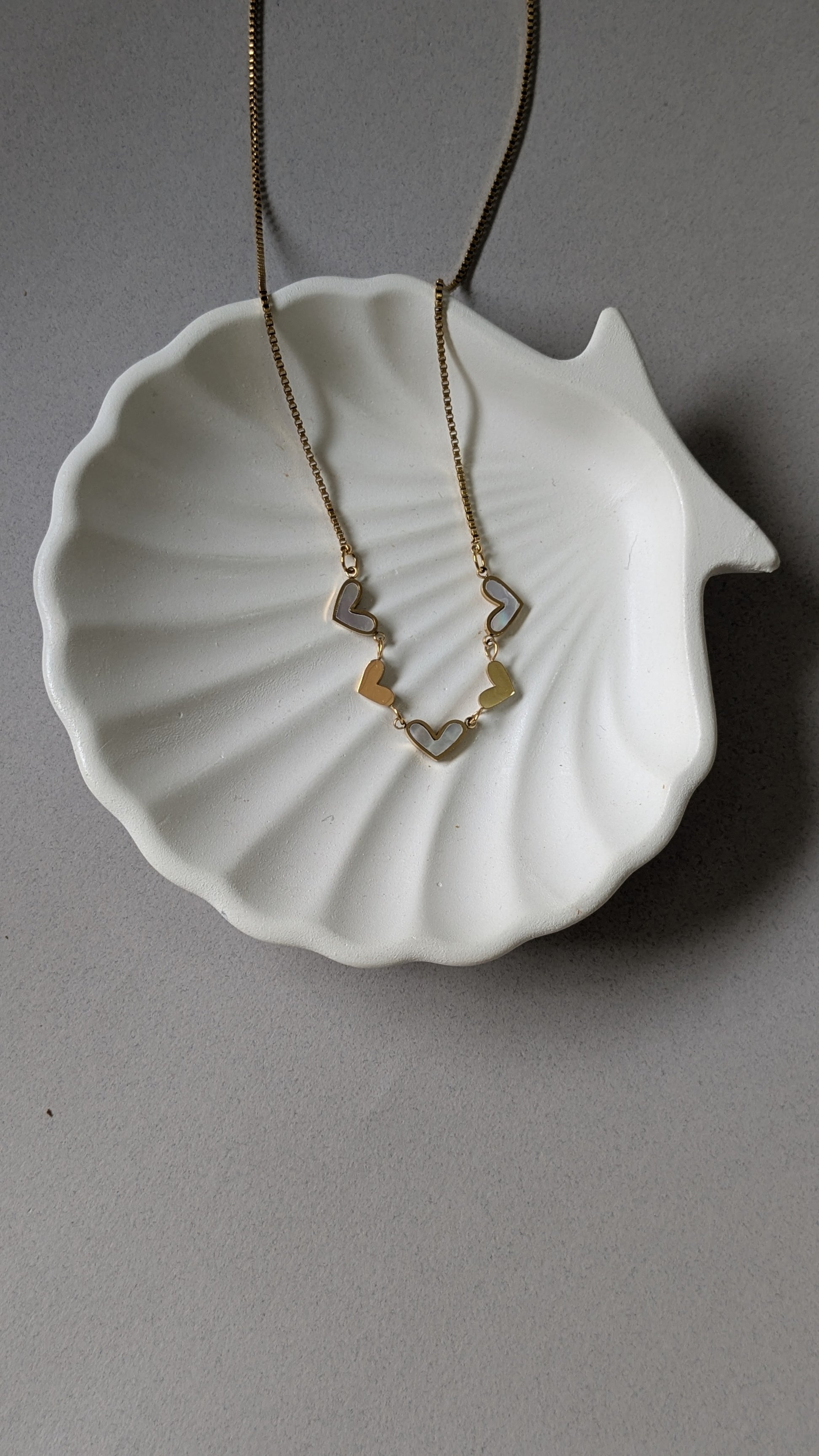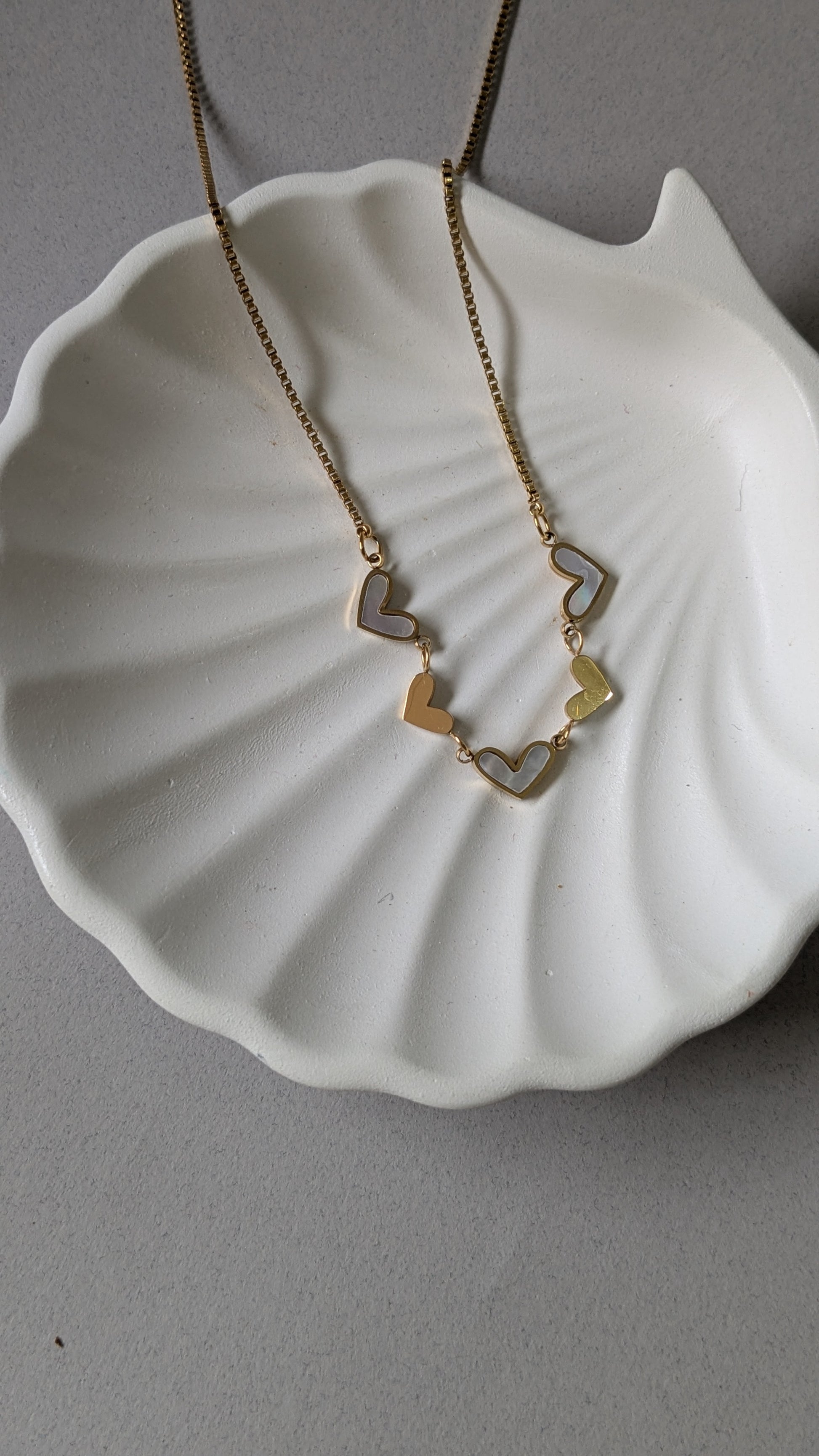 Spread love in style with our Anti-Tarnish Multi Heart Necklace, a delicate and charming piece that captures the beauty of affection in every detail. Featuring a series of elegantly crafted heart motifs linked along a fine gold-plated chain, this necklace radiates warmth, grace, and timeless femininity.