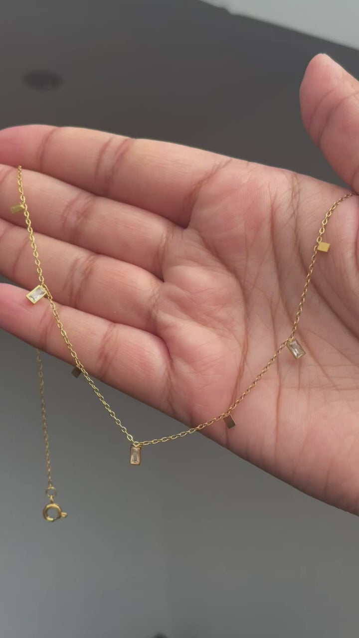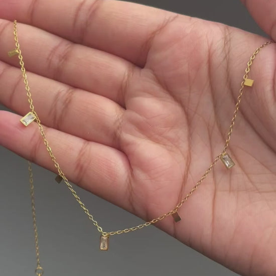Design: Sleek square geometric charms on a fine chain